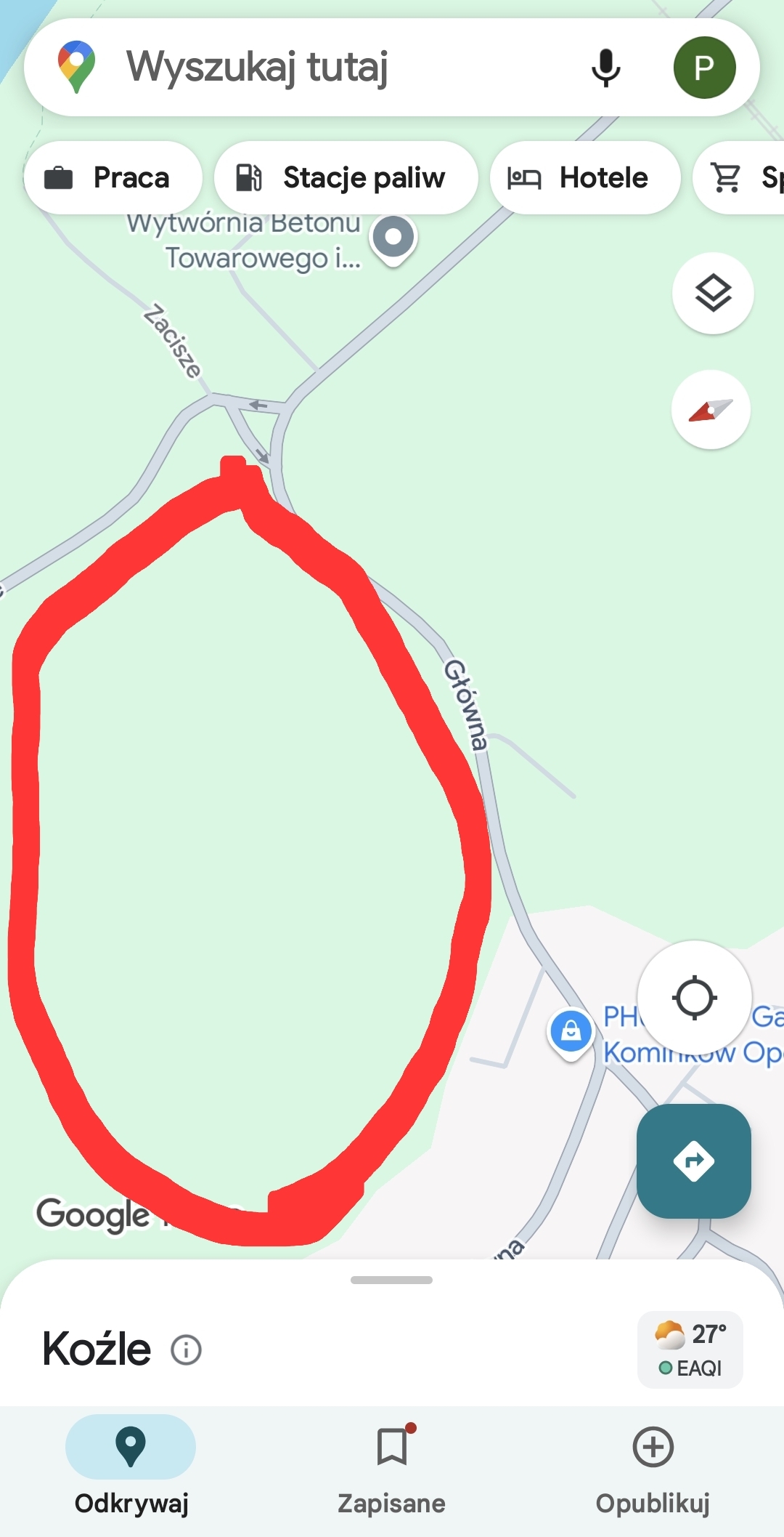 Adres Ul.Główna od zatoczki autobusowej przy ul.Rybarze do ul.Głównej 10